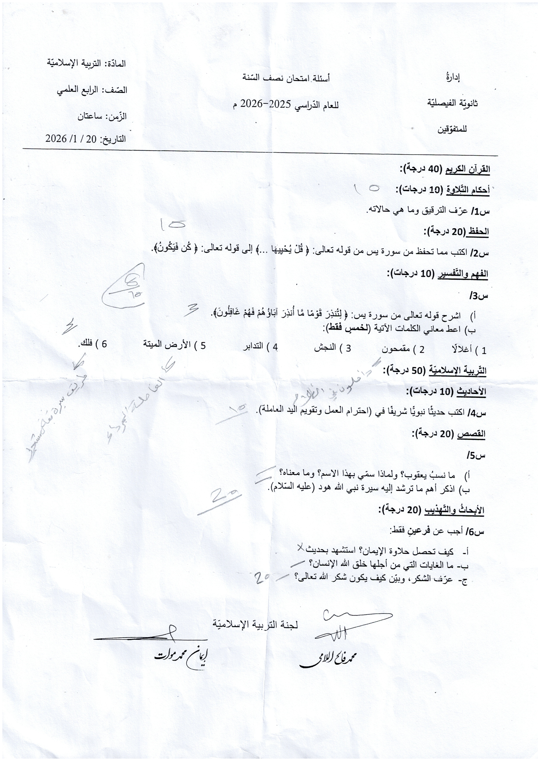 أسئلة التربية الإسلامية الرابع العلمي 2026