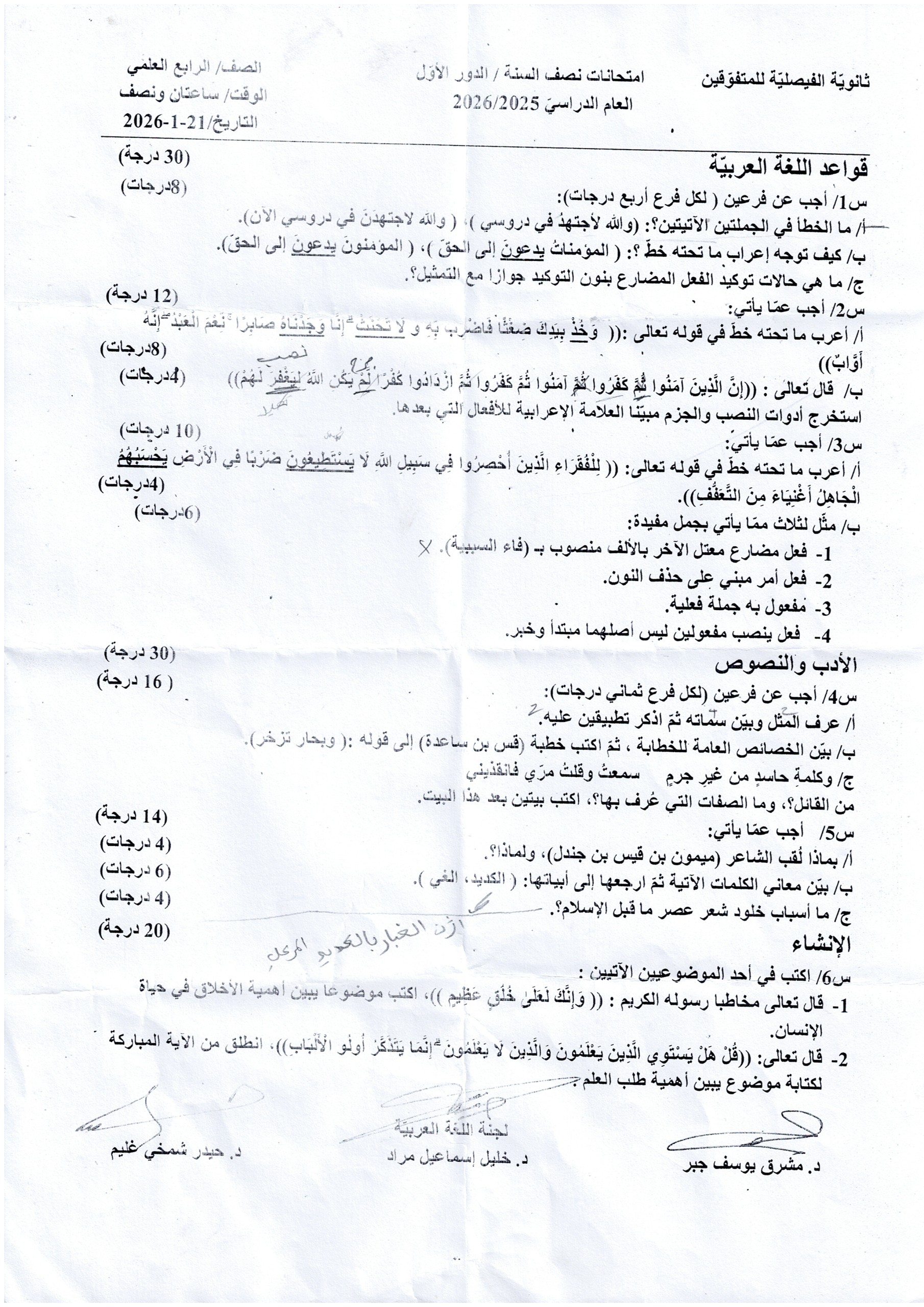 الرابع العلمي — ث. الفيصلية للمتفوقين